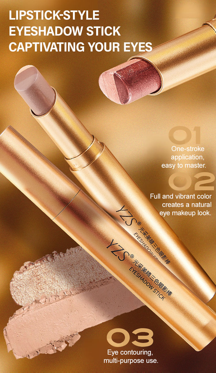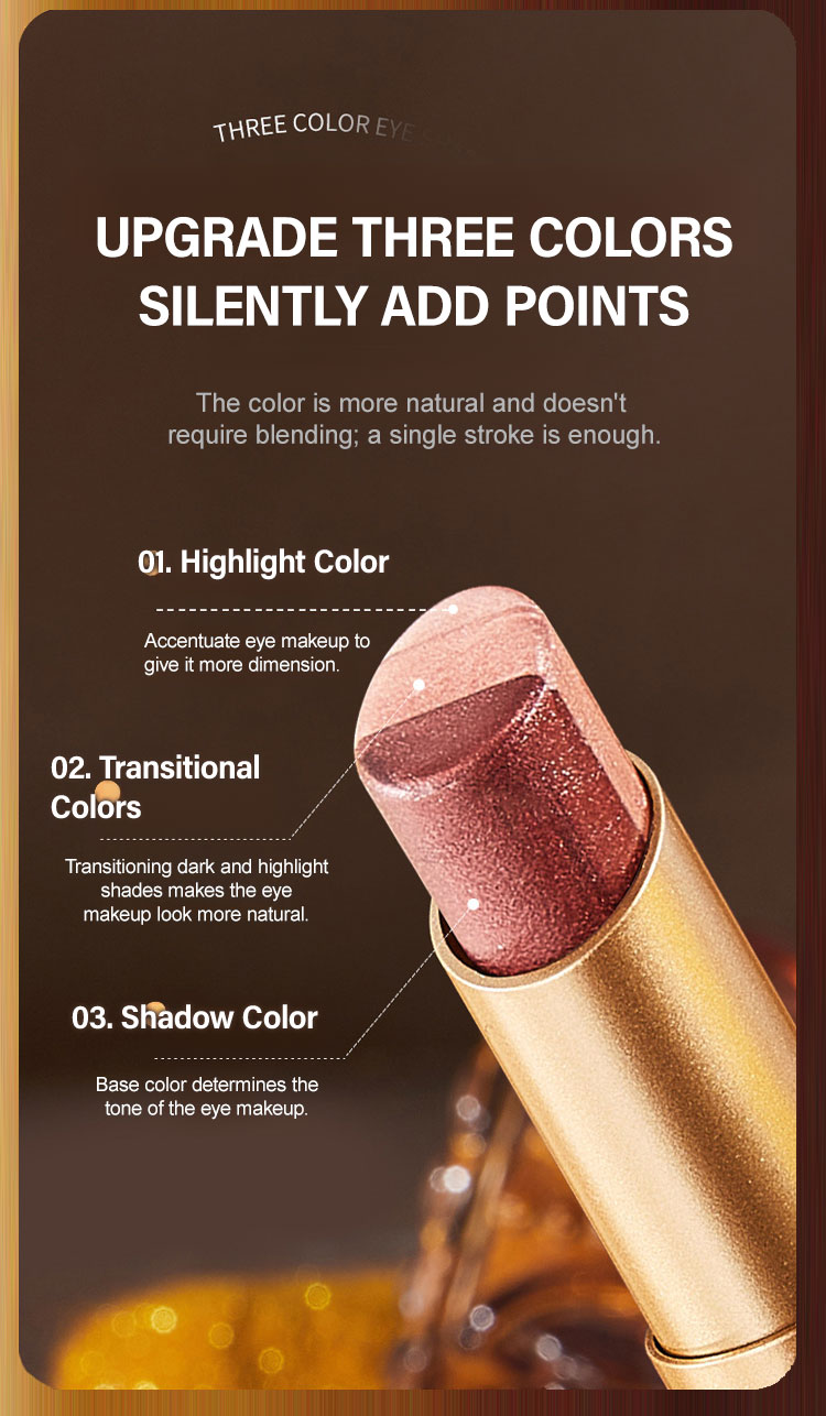 One Swipe, Three Shades – Gradient Eyes in 3 Seconds🔥【A Touch of Three Colors】Golden Diamond Three-Color Eyeshadow Stick🎨Lazy Girl Hack: Highlight+Contour+Blend, All-in-One💎Shimmer Texture, 8-Hour Wear – Zero Fallout