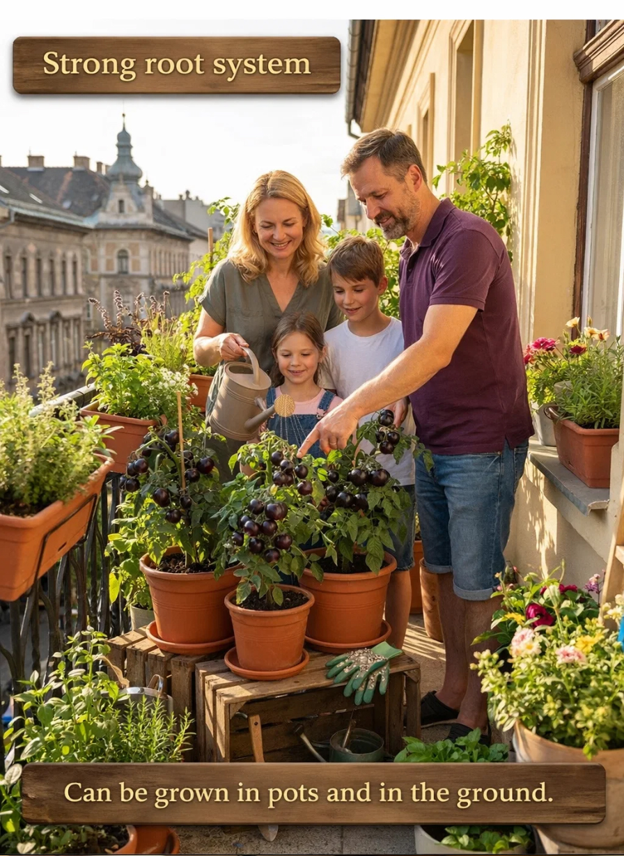 🧑🌾 Cultivated by Agri-Tech Institute – nutrient-rich, delicious flavor🖤 Unique purple-black skin – rich in anthocyanins🍅 Large fruit type – up to 200g+ per tomato💧 Juicy – perfect sweet-tart balance🌱 High disease resistance – easy to grow and manage🏡 Suitable for balconies, gardens, greenhouses